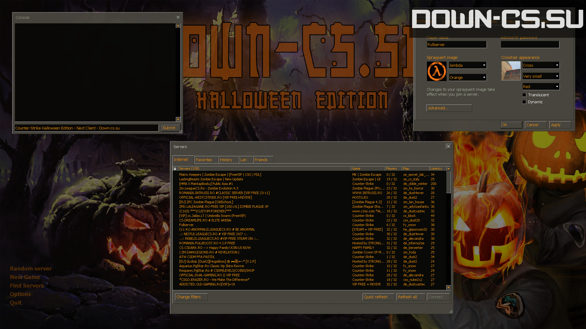 By the way, bots in Counter-Strike Halloween are very nice. You can easily customize their skills level, their amount and much more via a convenient menu. Powerful protection guarantees your game and PC protection from any malicious scripts and files so it's safe to play on any new server. Server browser is full of hundreds different locations of most popular and well-known modifications from classic, CSDM, Gungame and Deathrun to Zombie, Surf, Kreedz, Predator and much much more.