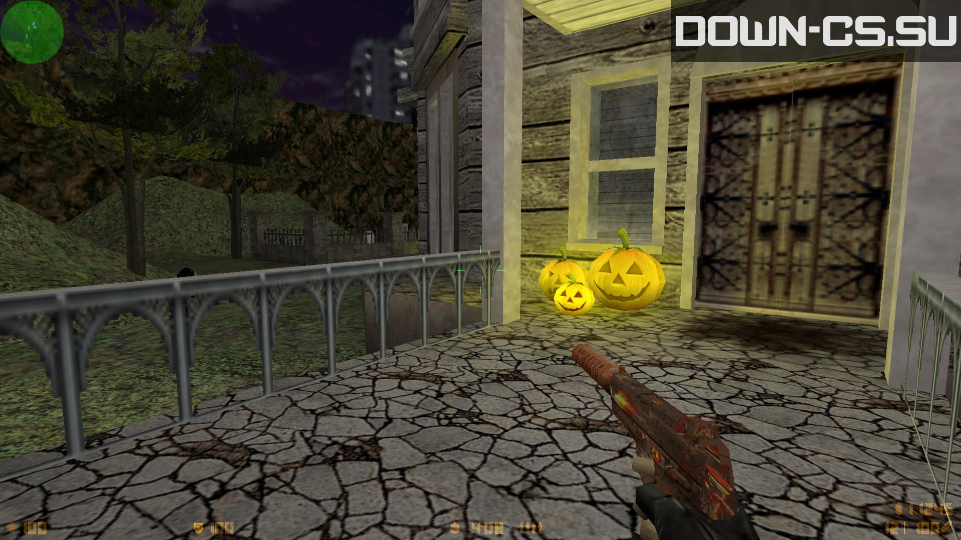 Aside from that, weapons skins are mostly new as well. They have a great animation and amazing HD quality textures. They are styled in CS GO type of design. It's quite a unique experience to use them in battle, much cooler that the usual standard ones. In addition to that, there are bonus maps: de_awe and cs_horror2. Both designed specifically for Halloween and looking very nice and well styled. It's fun to play there with bots or your friends.